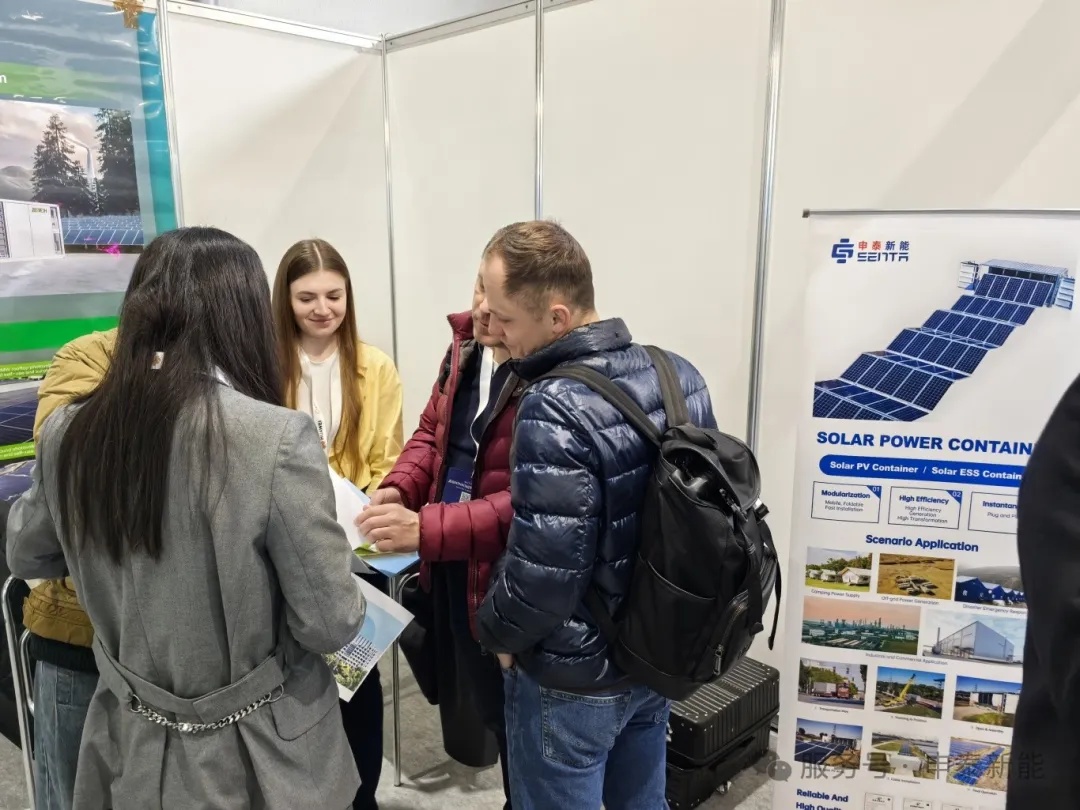 Sur le site de l'exposition, une large gamme de technologies et de produits photovoltaïques est présentée. Des modules photovoltaïques et systèmes de suivi à haut rendement aux centrales photovoltaïques distribuées, au déploiement rapide de systèmes d'énergie solaire dans les zones de guerre, au stockage d'énergie par batterie en conteneur (BESS), aux systèmes d'alimentation hybrides diesel-solaire et à d'autres solutions de stockage d'énergie et de micro-réseaux, il démontre pleinement le développement diversifié et les vastes perspectives d'application de la technologie de l'énergie photovoltaïque. L'équipe de Shentai New Energy a mené des échanges et des discussions approfondis avec des sociétés énergétiques, des experts et des universitaires du monde entier, a absorbé des concepts techniques de pointe et des idées innovantes de l'industrie et a fourni une référence utile pour la recherche et le développement technologique et les mises à niveau de produits de l'entreprise.